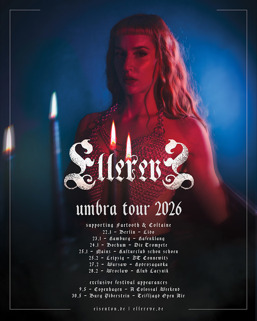 Recently, Ellereve released her second album Umbra – a bold and unexpected shift into heavier territory. While her debut invited listeners into an introspective realm, Umbra delves deeper into cathartic extremes: towering post-metal surges, darkly cinematic passages, and moments of fragile beauty merge into her most intense and dynamic work to date. The album also features guest vocals from Michael J.J. Kogler of Harakiri for the Sky / Karg and David “Eklatanz” Conrad of Heretoir – their voices weave seamlessly into Umbra, deepening its emotional gravity and widening the shadows in which the album comes alive.